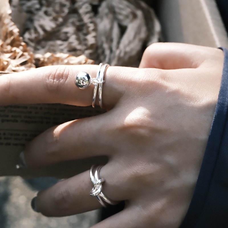 ♡mochi♡R172|925銀·心結雙層戒指💞✨ 純銀戒指|百搭戒指|日系戒指